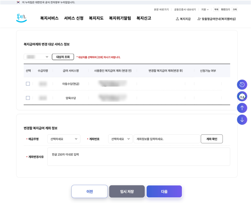 복지로에서 아동수당 계좌변경 하는 법
